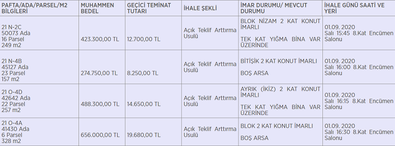 Buca Belediyesi, Tınaztepe Mahallesi’nde yer alan konut imarlı 4 adet arsayı açık artırmayla satışa çıkardı. Satışa çıkarılan arsalar Dokuz Eylül Üniversitesi kampüsüne yakın mesafede yer alıyor. Arsaların satış fiyatı 1 milyon 841 bin TL olarak açıklandı. İhalesi 1 Eylülde gerçekleşecek.