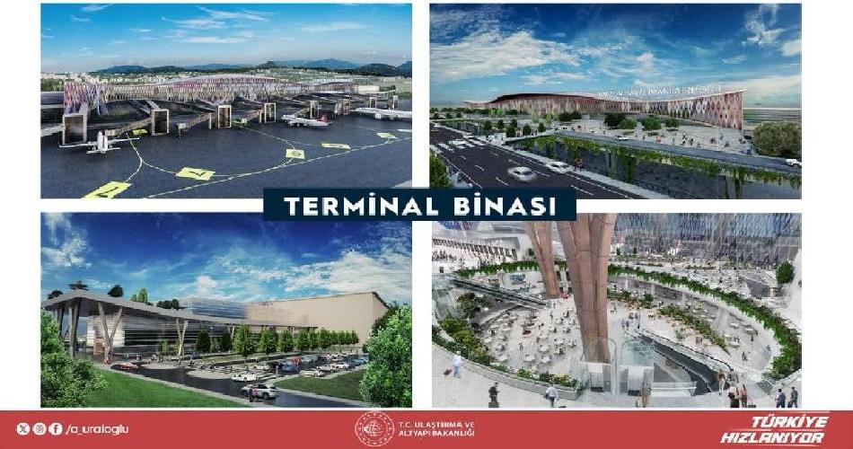 Ulaştırma ve Altyapı Bakanlığı tarafından paylaşılan görüntülerde, havalimanının tamamlandıktan sonra nasıl gözükeceği resmedildi.