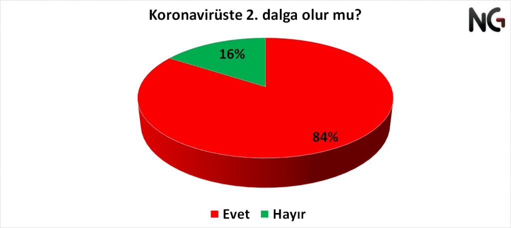 Eski hayatımıza geri dönmeye çalışırken vaka sayılarının 2. kez zirve yapabileceğini öngörenlerin oranı %84. Bu sonuca bakarak toplum genelinde salgının 2. dalgasının beklendiğini görüyoruz.