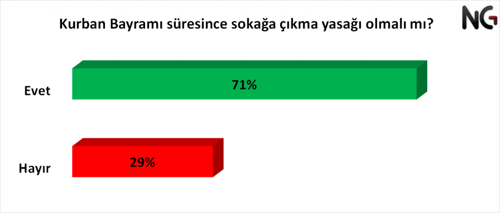 Kurban Bayramı’nda genel sokağa çıkma yasağı uygulanmalı mı? Araştırmamıza katılan her 10 kişiden 7’si Kurban Bayramı süresince genel sokağa çıkma yasağı olması gerektiğini düşünüyor.