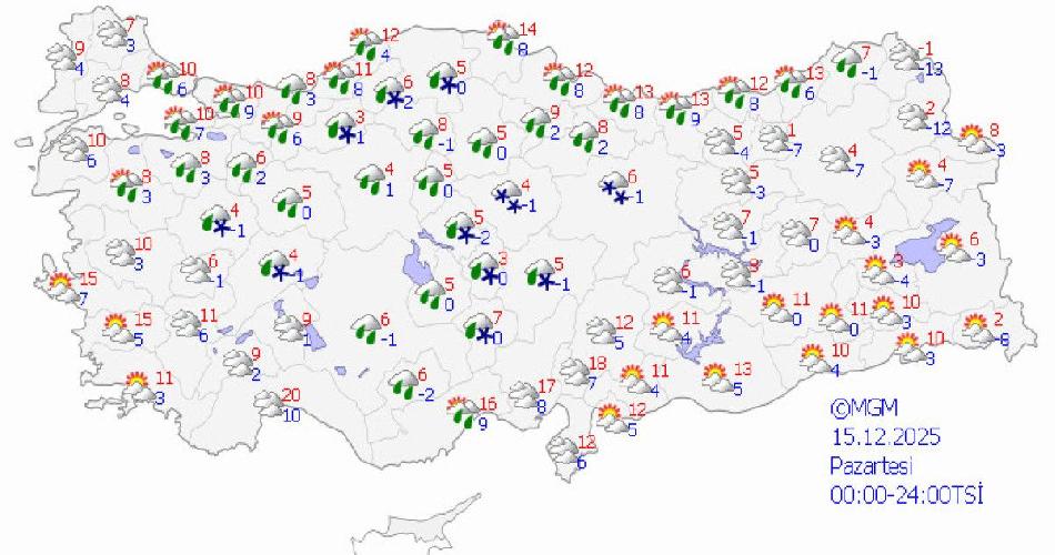 Kuzey ve doğu bölgelerde sıcaklıklar sıfırın altına yaklaşırken, batı ve güneyde 11-15 derece bandı korunacak.