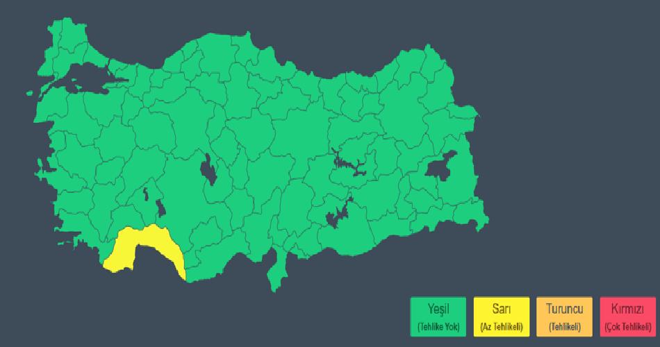 Özellikle Muğla (Doğu kesimleri), Antalya, Isparta, Düzce, Zonguldak, Bartın illerindeki vatandaşların dikkatli olması konusunda uyarıda bulunuldu. Bu çevrelerde beklenen yağışların yer yer kuvvetli olacağı belirtildi. Antalya için ise sarı kodlu uyarı verildi.