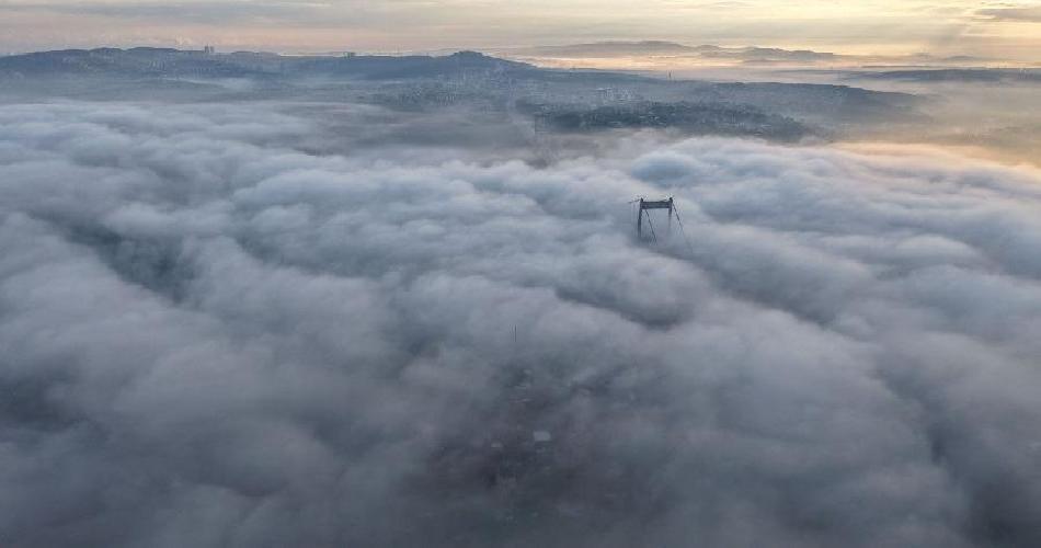 15 Temmuz Şehitler Köprüsü ve Fatih Sultan Mehmet Köprüsü sis bulutlarının altında kaldı. Boğazda oluşan eşsiz manzara havadan görüntülendi.