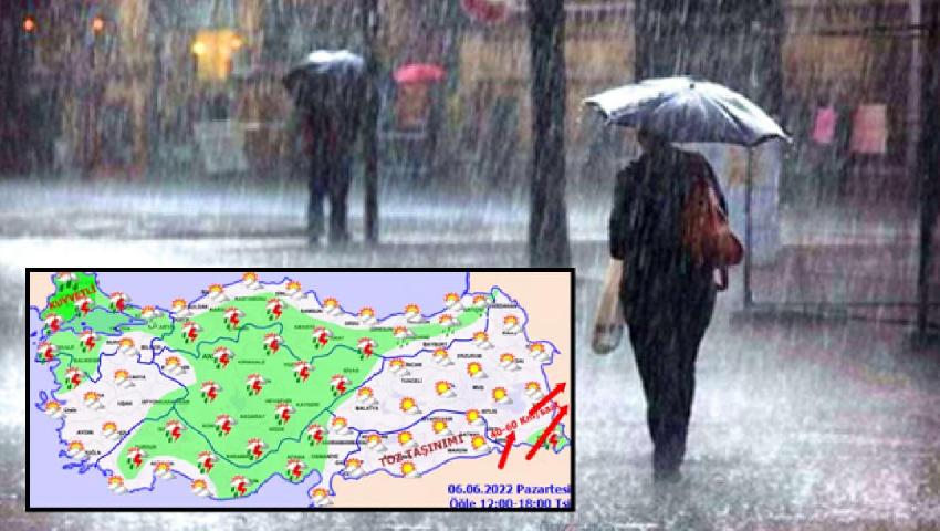 Meteoroloji Genel Müdürlüğü tarafından yapılan son değerlendirmelere göre: Ülkemizin kuzey, iç ve batı kesimlerinin parçalı ve yer yer çok bulutlu, (Bursa ve Bilecik hariç) Marmara, Göller Yöresi, (Eskişehir hariç) İç Anadolu, (Sinop hariç) Batı Karadeniz, Doğu Karadeniz’in kıyı kesimleri ile Afyonkarahisar, Mersin, Adana, Osmaniye, Amasya, Tokat, Çorum ve Artvin çevrelerinin yerel Sağanak ve gök gürültülü sağanak yağışlı, diğer yerlerin az bulutlu ve açık geçeceği tahmin ediliyor. Yağışların, öğle saatlerinden itibaren Edirne, Kırklareli ve Tekirdağ çevrelerinde yerel kuvvetli olması bekleniyor. Güneydoğu Anadolu’da toz taşınımı bekleniyor.