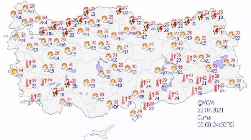 “İstanbul’da bugün ve perşembe günü sağanak geçişleri bekleniyor. İstanbul’da bugün sıcaklık 31 derece, önümüzdeki 2-3 gün içinde ise 30 derecenin altına inmesi bekleniyor. Ankara’da hava sıcaklığının bugün için 36 derece olacağı değerlendiriliyor. Ankara’da hava sıcaklıkları cuma günü 29 dereye kadar düşecek. İzmir’de 35-36 derece olan hava sıcaklığının devam etmesini bekleniyor. Ankara ve İzmir için ise önemli bir yağış beklentisi önümüzdeki 3-4 gün için yok.”