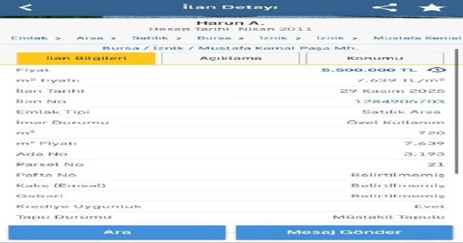 Bursa’da yaşayan inşaat mühendisi Kadircan Aslıvar, İznik Surları’nın 4 kapısından İstanbul Kapı ile tamamen yıkılan Göl Kapı’nın arasındaki sit alanında yer alan, ailesine ait özel parseli, Katoliklerin ruhani lideri ve Vatikan Devlet Başkanı Papa 14’üncü Leo’nun ilçeye ziyaretinden bir gün sonra internetten, 5 milyon 500 bin liraya satışa çıkardı.