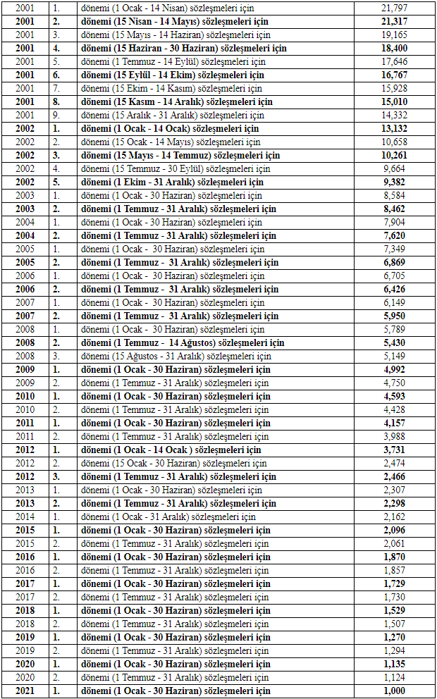 MADDE 2 – (1) 1980-2000 yılları arasındaki dönemlerin fiyat artış oranları 7/8/2013 tarihli ve 28731 sayılı Resmî Gazete’de yayımlanan Proje ve Kontrolluk İşlerinde Uygulanacak Fiyat Artış Oranları Hakkında Tebliğdeki o dönem için yer almış olan oranların 1 inci maddenin birinci fıkrasında yer alan tabloda 2013 yılının 2. dönemine karşılık gelen katsayı (2,298) ile çarpılması suretiyle bulunur.