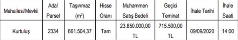 Mersin Silifke Belediyesi , Kurtuluş mahallesinde denize sıfır konumda yer alan 661.504 metrekarelik araziyi satışa çıkardı. Arazinin muhammen bedeli 234 milyon 850 bin TL olarak belirlendi. İhalesi 9 eylülde gerçekleşecek.
