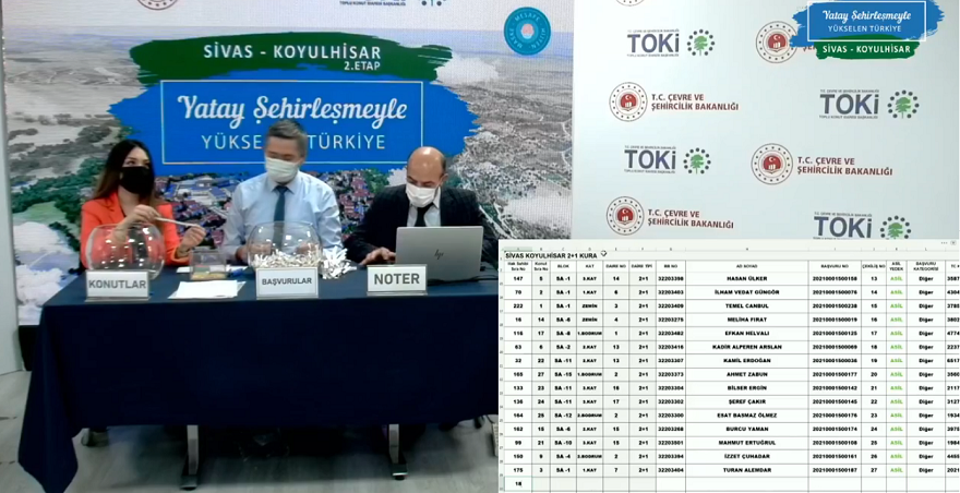 TOKİ kura çekilişleri pandemi nedeniyle vatandaşların katılımı olmadan noter huzurunda canlı yayında açıklanıyor. Kura sonuçlarının noter tarafından onaylanmasının ardından kura listesi akşam saatlerinde TOKİ’nin resmi web sitesinden açıklanıyor.