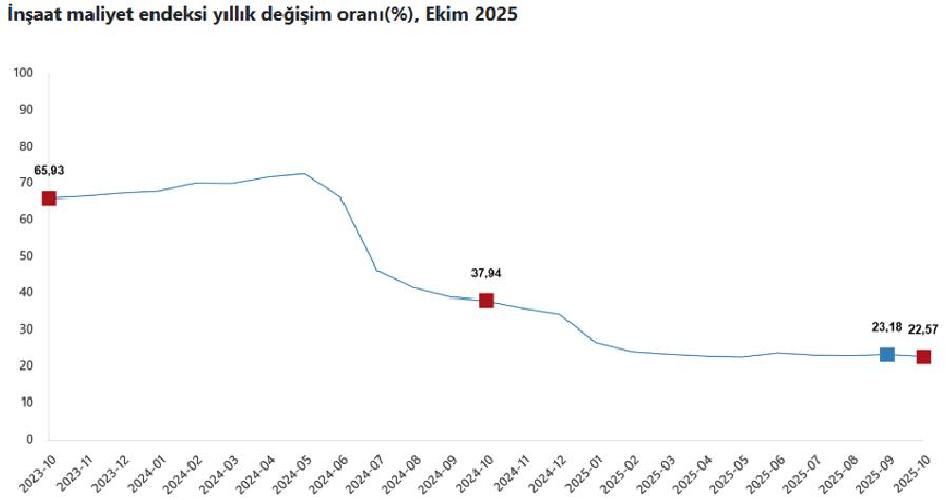 Türkiye İstatistik Kurumu (TÜİK), Ekim 2025 dönemine ilişkin inşaat maliyet endeksi verilerini açıkladı.