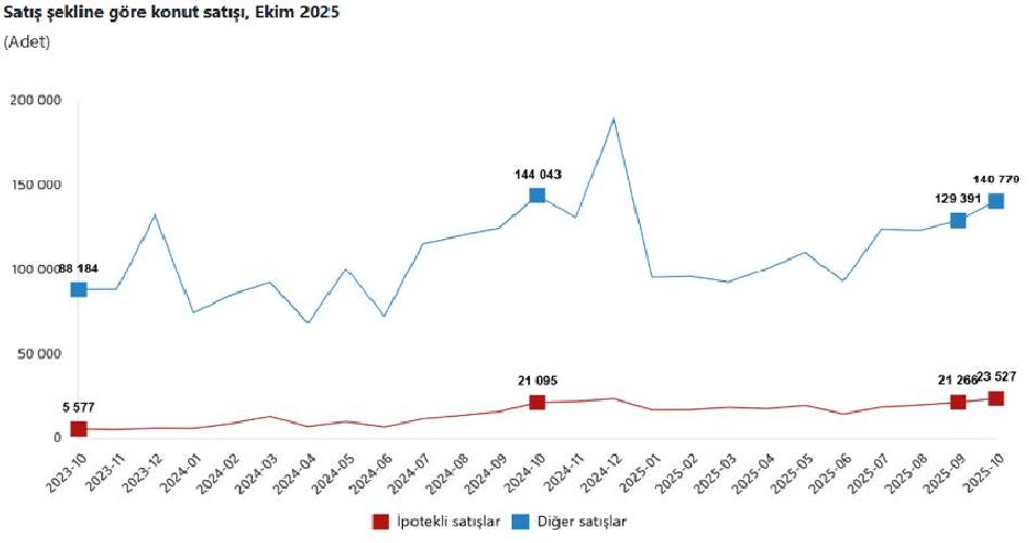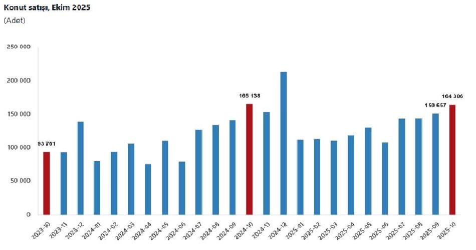 Konut satışları yıllık bazda azalsa da satışlarda 2025’in en yüksek satış verisine ulaşıldı. Eylülde 150 bin 657 konut satılmıştı.