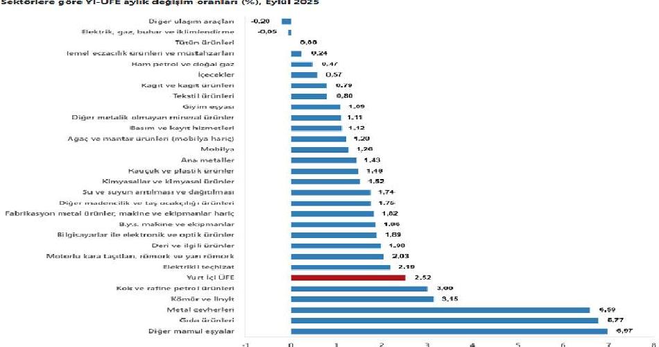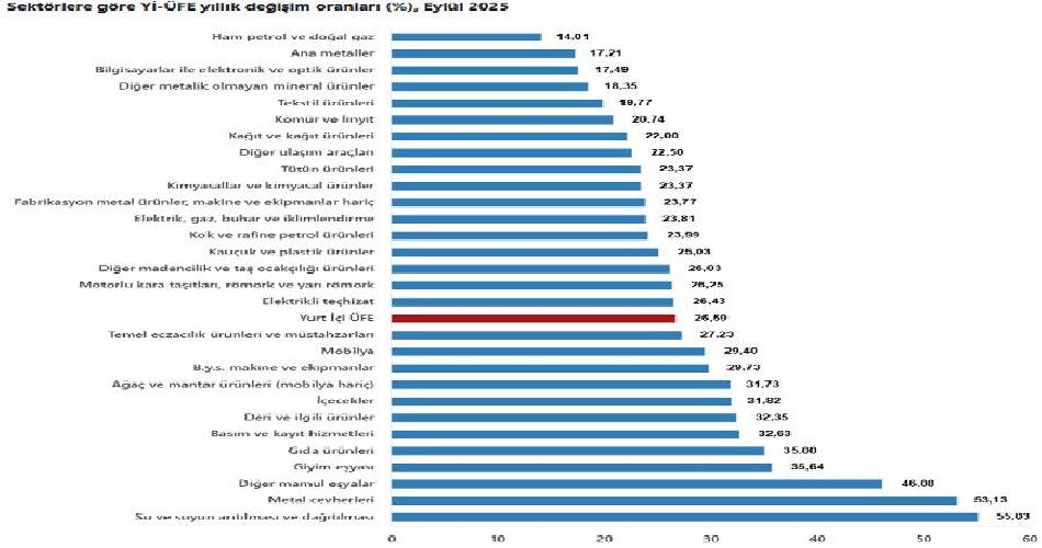 Türkiye İstatistik Kurumu (TÜİK), Eylül 2025 dönemine ilişkin Yurt İçi Üretici Fiyat Endeksi (Yİ-ÜFE) verilerini yayımladı.