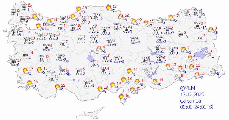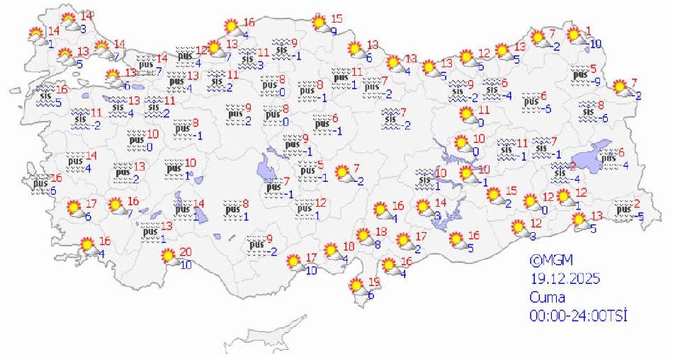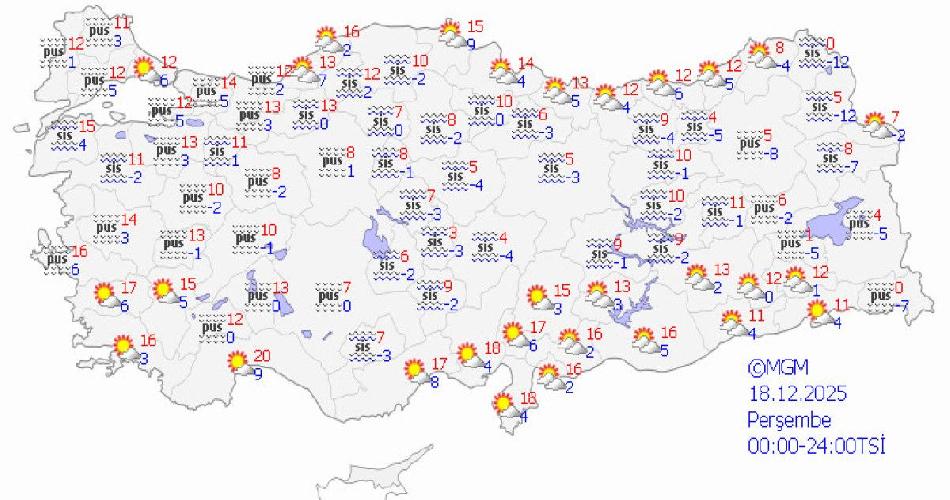 Bugün ülke genelinde pus ve sis hakimiyeti var.