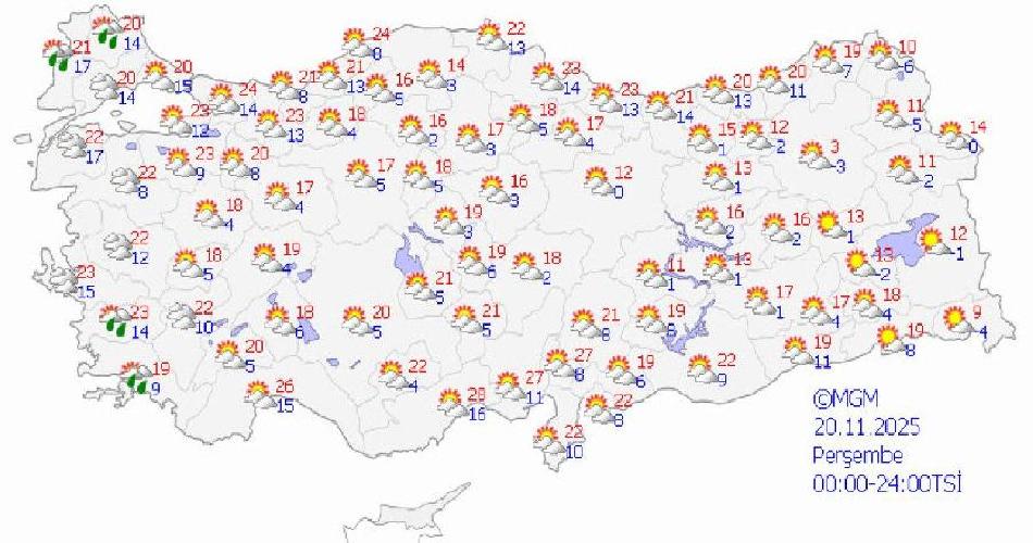 Meteoroloji Genel Müdürlüğü’nün (MGM) verilerine göre sıcaklık kuzey ve iç kesimlerde mevsim normallerinin hafif üzerinde, diğer bölgelerde ise normallere yakın sıcaklıklar hakim olacak.