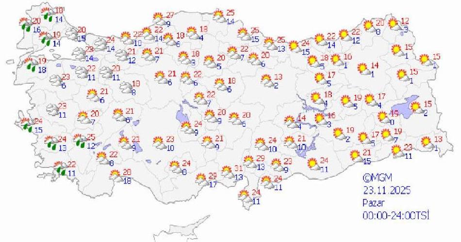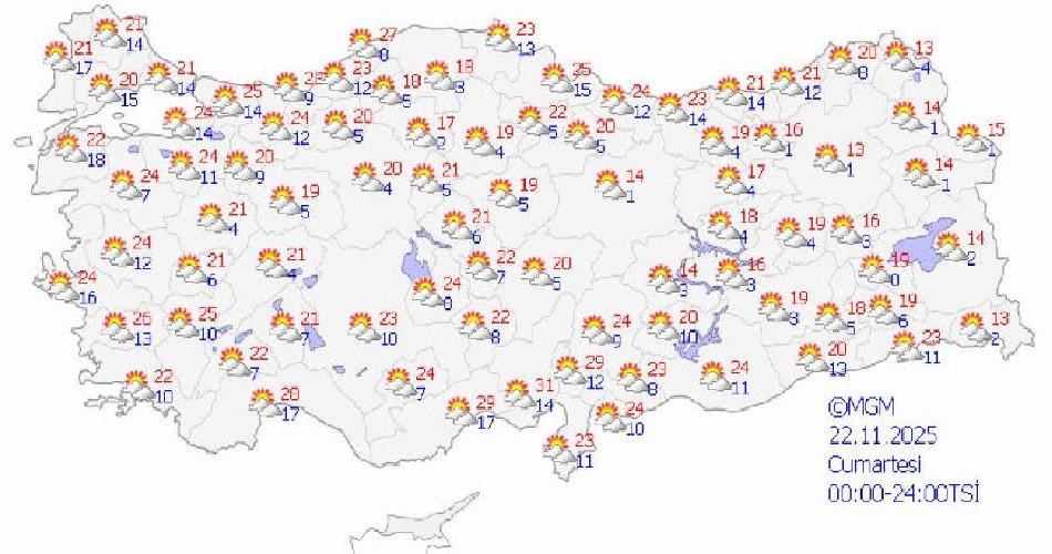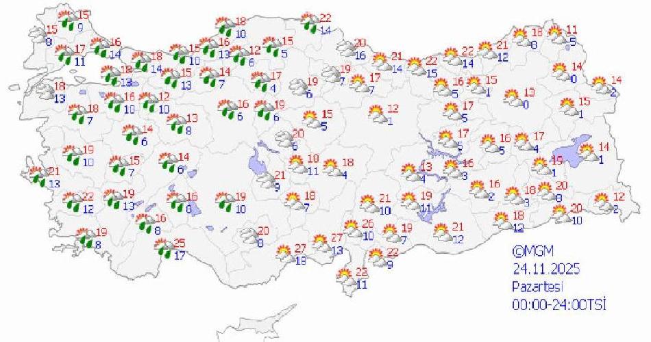 Hafta sonuna doğru, cumartesi günü güneşli bir hava bekleniyor; iç ve güney bölgelerde sıcaklıklar 25 dereceye yükselecek.